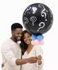 The balloon is filled with pink or blue confetti